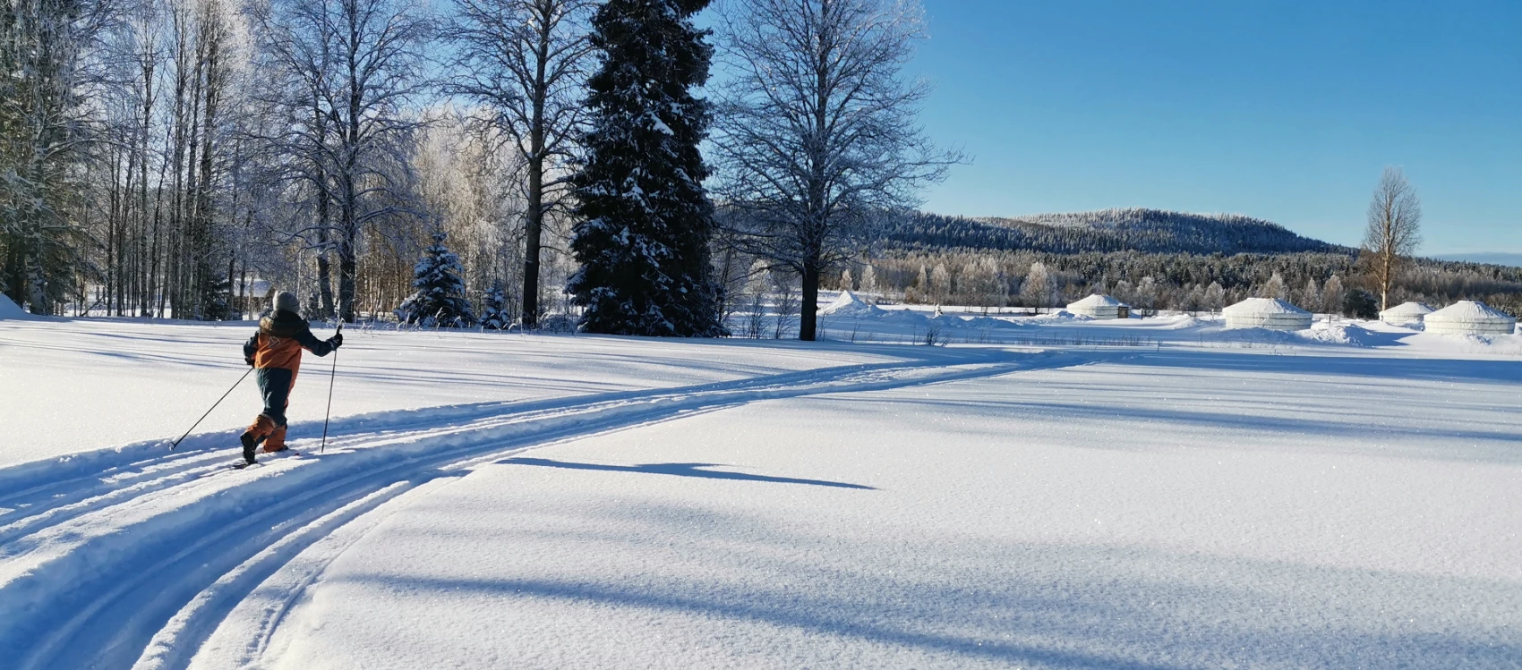 A ski trail runs along the riverside, offering a loop of few kilometers. Skiing equipment is available for rent from us.